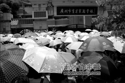 在育才實驗學(xué)校門口,從佛山開車過來的李女士告訴記者,他們一個早上跑了3個地方才找到考場,“一開始以為是育才中學(xué),跑到那邊才知道弄錯了,后來又跑去了附近的第109中,第三次才找到這里!
