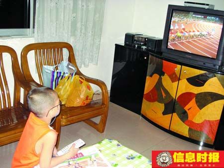 奧運(yùn)雖好看,可居住在星匯園的張女士這兩天卻有點(diǎn)擔(dān)心了。開學(xué)就讀五年級的兒子軒仔是個(gè)體育愛好者,這個(gè)暑假為了看奧運(yùn),連之前一直吵著的云南十日游都放棄了:從奧運(yùn)開幕至今,軒仔每天唯一的活動(dòng)項(xiàng)目就是盤在沙發(fā)里抱著遙控器調(diào)來調(diào)去,從一早的《朝聞天下》看到晚上十一點(diǎn)多鐘的《全景奧運(yùn)》,中途去趟洗手間軒仔都會一路小跑。