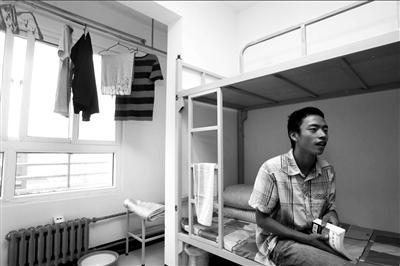唐奎報到后,在宿舍接受記者采訪。記者夏永/攝