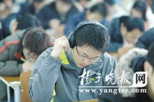 本次考試江蘇省共設(shè)223個(gè)考點(diǎn)、26212個(gè)考場(chǎng),134所高校的780489名考生報(bào)名參加考試,比去年同期增加108450人,增幅16%,報(bào)考規(guī)模再創(chuàng)新高,仍居全國(guó)第一。圖為江蘇工業(yè)學(xué)院的一名考生正在調(diào)試耳機(jī)。 楊素平 攝
