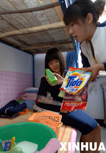 為迎接這些災(zāi)區(qū)學(xué)生的到來,石家莊外語翻譯職業(yè)學(xué)院專門成立了“迎接四川災(zāi)區(qū)同學(xué)”籌備組,投入10多萬元為他們做好食宿安排,采購了被褥、蚊帳、睡衣、洗漱用品等日常生活用品,并且準(zhǔn)備了專項資金,每月將為每個學(xué)生發(fā)放500元生活補助。