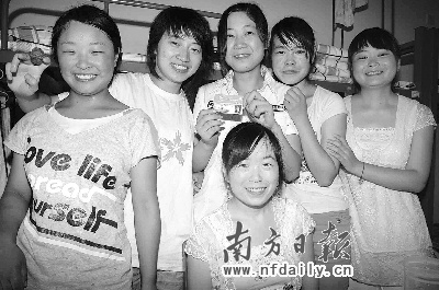 →來(lái)自災(zāi)區(qū)的大二學(xué)生領(lǐng)到學(xué)生卡,在廣東開(kāi)始新的大學(xué)生活。