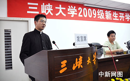 中新網(wǎng)宜昌10月9日電(記者 郭曉瑩)10月9日下午,三峽大學為包括“最牛作文考生”周海洋在內(nèi)的5名新生舉行了一個簡短而隆重的開學典禮,至此,周海洋正式就讀于三峽大學。