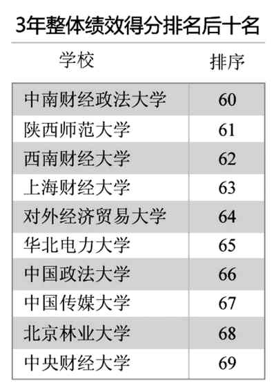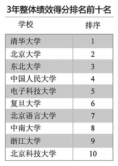 數(shù)據(jù)統(tǒng)計顯示:有近半數(shù)高校過去3年“投入多,產(chǎn)出少”;另有29所高校“產(chǎn)出高于投入”;還有7所高校投入和產(chǎn)出的排名一致,“投入產(chǎn)出相當”。整體績效得分前3名的高校分別是清華大學、北京大學、東北大學。