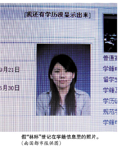 不過(guò),回想起前幾天上網(wǎng)查詢(xún)學(xué)籍信息發(fā)現(xiàn)有兩個(gè)自己,并且有一個(gè)自己去年已經(jīng)在武漢提前畢業(yè)時(shí),林琳還覺(jué)得有點(diǎn)后怕。林琳介紹說(shuō),由于面臨畢業(yè),這段時(shí)間學(xué)校正在為畢業(yè)生辦理離校手續(xù),老師要求他們登錄中國(guó)高等教育學(xué)生信息網(wǎng)核實(shí)自己的學(xué)歷情況。