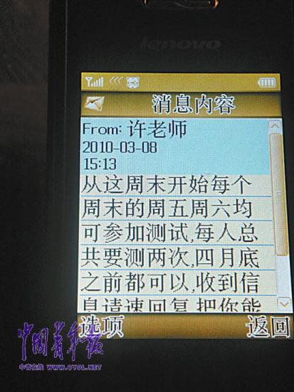 許老師告訴龍劍,測試是在北航附近的一家星級賓館。他會(huì)在每周一給龍劍發(fā)短信,詢問是否本周能參加測試。