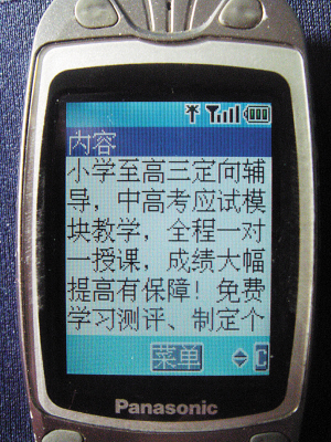 劉女士的孩子在紅橋區(qū)實驗小學(xué)上五年級,她最近經(jīng)常接到提供寒假輔導(dǎo)的短信。記者按照她短信中的號碼撥通了報名電話,自稱是某著名培訓(xùn)中心的“張老師”介紹說:“我們能提供小學(xué)一年級到高三各學(xué)科的定向輔導(dǎo),尤其是針對中高考的學(xué)生!迸嘤(xùn)地點在河西區(qū)的一棟寫字樓內(nèi),老師在一個大辦公室分割成的若干格子間內(nèi)對學(xué)生進(jìn)行一對一授課,還可以針對不同孩子制定特殊的輔導(dǎo)方式。