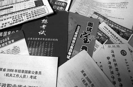 已經(jīng)在某企業(yè)單位工作一年的黃中(化名)則是考公務(wù)員大軍中的一員,他報(bào)考了今年河南省直機(jī)關(guān)公務(wù)員。為了“提高”自己,需要到社會(huì)上的培訓(xùn)班“補(bǔ)補(bǔ)課”。他報(bào)了一個(gè)考前輔導(dǎo)班,花費(fèi)了1100多元。據(jù)說,還有沖刺班、面試班、保過班等各種名目,如果再參加,還需要花費(fèi)數(shù)千元!皡⒓舆@樣的考前輔導(dǎo)班是否有用?”面對(duì)記者的詢問,黃中一臉漠然,“錢是花了,但心里面沒有底!