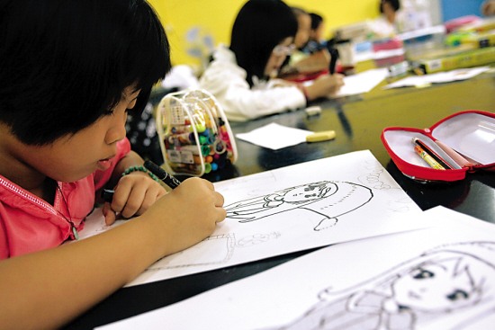 廣州青年文化宮李少琬老師告訴記者:“一張紙一只筆就能帶給孩子無窮的樂趣。而且小孩能在畫畫的過程中得到來自同伴和老師的表揚和關注,這對于他們更為重要!碑斃罾蠋煾嬖V班上學生現在美術也能考級時,多數孩子表現出很高的熱情,紛紛舉起小手要報名。但第二天,大多學生都拉著個臉說“媽媽不給報”、“爸爸不給報”。