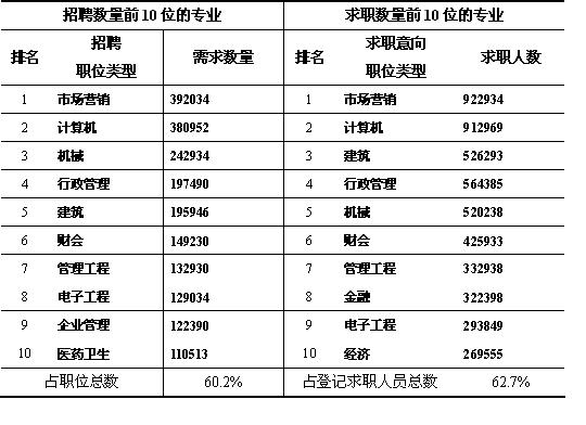 計(jì)算機(jī)、市場(chǎng)營(yíng)銷、機(jī)械、行政管理、建筑等專業(yè)是人才市場(chǎng)招聘的熱點(diǎn),求職人員主要集中在這五個(gè)專業(yè)。