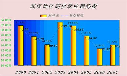 昨日,武漢市大中專畢業(yè)生就業(yè)管理辦公室發(fā)布“2007年度武漢地區(qū)大學(xué)畢業(yè)生就業(yè)率指數(shù)報告”,稱去年武漢市大學(xué)畢業(yè)生就業(yè)率達(dá)到74.12%,比上年高出1.48%,自2004年以來首次出現(xiàn)回升。