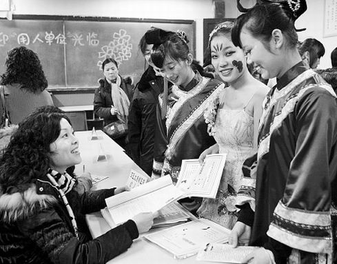 “今年學(xué)生們的總體期望值下降了,以前像寧夏、新疆這些地方要招人,根本沒(méi)人愿意去,特別是成績(jī)優(yōu)秀的學(xué)生,工資少于4000根本不考慮,但今年,很多學(xué)生自己降低了要求!痹陉兾鲙煼洞髮W(xué)就業(yè)指導(dǎo)中心辦公室采訪時(shí),記者遇到了該校外國(guó)語(yǔ)學(xué)院老師。