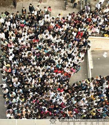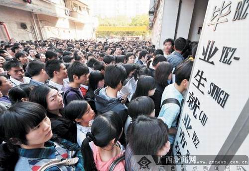 2月11日,廣西師范學(xué)院畢業(yè)生小陳特地起了個(gè)大早,趕在8時(shí)30分來到南寧市人才市場(chǎng),參加當(dāng)天舉行的春季高校畢業(yè)生專場(chǎng)招聘會(huì)。令小陳吃驚的是,人才市場(chǎng)入口處已有兩三百名畢業(yè)生在等候,原打算提前占據(jù)“有利地形”的他,只能排在離入口約20米遠(yuǎn)的空地。