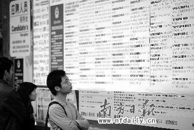 根據(jù)現(xiàn)場(chǎng)及網(wǎng)絡(luò)招聘數(shù)據(jù)統(tǒng)計(jì),南方人才網(wǎng)求職本科學(xué)歷的占25%,本科以下占74%,碩士及博士為1%。而在企業(yè)的招聘當(dāng)中,對(duì)本科生的需求卻只有 10%,本科以下的高達(dá)89%,碩博士為1%?梢,本科生明顯供過于求,碩博士相對(duì)供求較為平衡,而本科以下的需求則極為旺盛。本科畢業(yè)生的就業(yè)將更加困難、更加嚴(yán)峻。3月23日至4月17日,通過南方人才網(wǎng)發(fā)布的招聘應(yīng)屆生的企業(yè)有459家,崗位數(shù)3639個(gè),招聘應(yīng)屆高校畢業(yè)生的崗位數(shù)與去年同期相比大約持平。應(yīng)屆高校畢業(yè)生求職者有32328人,較去年同期上升約10%。在中國(guó)南方人才市場(chǎng)舉辦的日常招聘會(huì)中,參會(huì)的應(yīng)屆生約占7%,但日常招聘會(huì)提供的應(yīng)屆畢業(yè)生崗位相當(dāng)少。