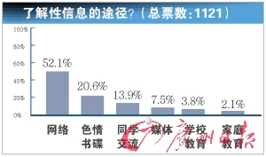 然而值得引起我們注意的是,本報在大洋網(wǎng)佛山頻道、佛山本地論壇天天新網(wǎng)站發(fā)起了一項關于此事件的網(wǎng)絡調(diào)查顯示,事件中傷得最深的并非錄音中的男女主角,而是“90后的整體形象”以及“整個社會都受到傷害”,而在獲取性知識渠道方面,調(diào)查顯示家庭教育和學校教育的排名竟然在倒數(shù)第一和第二,兩項疊加起來也只占到5.9%,遠遠落后于第二名“色情影碟或書籍”。