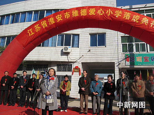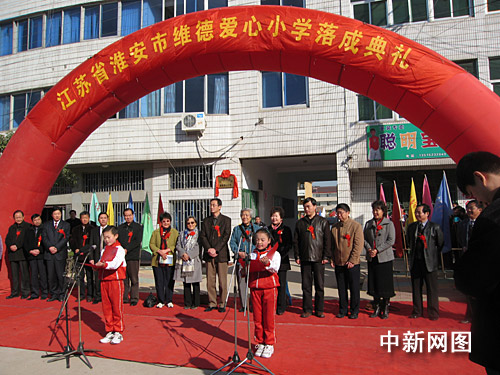中新網(wǎng)淮安11月28日電 (記者 淮黎霞)一所名為“維德愛心小學(xué)”的落成典禮二十七日在周恩來總理的故鄉(xiāng)江蘇淮安市舉行。這所小學(xué)的捐贈人是臺胞張介玉先生和“臺灣愛心第二春文教基金會”,并由中國僑聯(lián)經(jīng)濟(jì)文化基金會興建。