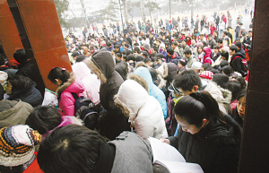 報考清華大學(xué)碩士研究生的考生共有11798人,比去年減少了600人左右。但清華大學(xué)研究生院表示,報考錄取比例沒有變化。昨日共有5756名考生在清華考點考試,其余考生分別在外地330個考點考試。清華還就考試期間的校內(nèi)交通、住宿、飲食等為考生做了充分準備?紤]到天氣寒冷,將繼續(xù)開放位于考試中心區(qū)的三教一段、三教二段,為考生提供午休場所。