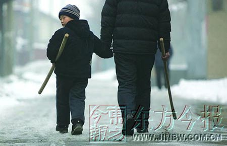 24日上午,記者趕到東金店村時(shí),在街上隨處可見手拿棍棒、鐵锨的村民。學(xué)校門口,放學(xué)時(shí),來接孩子的是清一色手拿棍棒的家長。