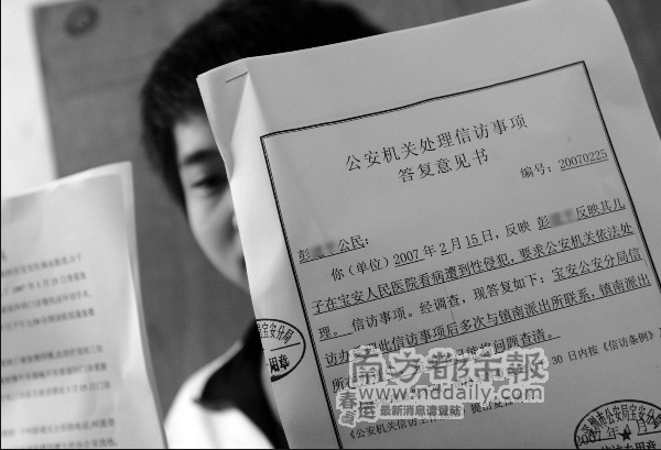 鎮(zhèn)南派出所通過(guò)寶安區(qū)公安分局對(duì)記者表示,這件事開(kāi)始移送給檢察院時(shí)因?yàn)樽C據(jù)不足,而被檢察院發(fā)回繼續(xù)取證,目前還在進(jìn)一步取證中。而彭先生表示,派出所跟他說(shuō)的是目前該案的材料已經(jīng)移交給寶安分局法制科,再由法制科送交區(qū)檢察院。寶安區(qū)檢察院一位檢察官表示,目前他們只有鎮(zhèn)南派出所送來(lái)的部分材料,而完整的材料還沒(méi)有移送過(guò)來(lái),因此目前尚不能對(duì)該事件進(jìn)行定性或起訴。
