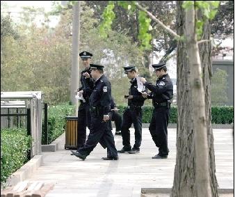 昨天下午2點(diǎn)30分左右,數(shù)輛警車停到中國(guó)美術(shù)館東側(cè)一社區(qū)花園外。10余名民警沖進(jìn)花園,直奔花園南門(mén)西南角的兩個(gè)書(shū)包。“警察們圍著書(shū)包轉(zhuǎn),不停地打電話!碑(dāng)時(shí)在花園的一位老太太說(shuō),一名民警悄悄靠近書(shū)包用耳朵貼著書(shū)包聽(tīng),但好像并未發(fā)現(xiàn)動(dòng)靜。隨后,民警開(kāi)始向花園里其他群眾做調(diào)查。
