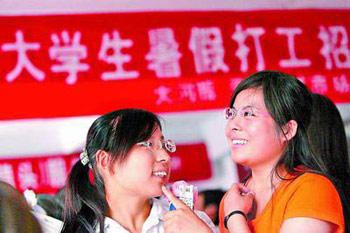 雖然勤工儉學(xué)不適用于《勞動(dòng)合同法》,但不少公司卻很喜歡招用在校學(xué)生為他們打工。易博說:“招聘在校大學(xué)生作為促銷員,一是因?yàn)樗麄內(nèi)巳杭校瑤滋鞎r(shí)間就能招到一二百人;二是在校大學(xué)生有熱情,社會(huì)經(jīng)驗(yàn)比較簡(jiǎn)單,不會(huì)提額外要求給企業(yè)添麻煩!