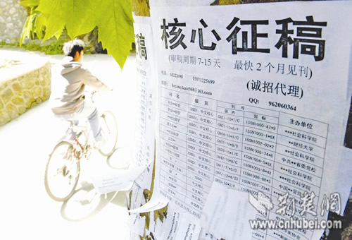 記者看到,有的廣告列出一溜刊物實(shí)名,其主辦單位、刊物級別、主要欄目、每版字?jǐn)?shù)等一目了然,還加上省略號,宣稱其刊物資源十分豐富;有的廣告打出“發(fā)表時(shí)間最快、收費(fèi)最合理”的招牌,明碼標(biāo)價(jià)“單版220元起,雙版400元起”;有的廣告還直白地說“可代寫論文”,“供職稱評定、保研、評獎學(xué)金、找工作之用”,即便是“博士學(xué)位資格論文”也敢染指……