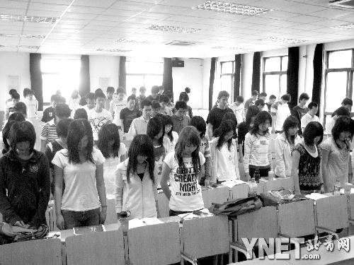 北京高校哀悼四川災區(qū)遇難者 學子課堂肅立(圖)