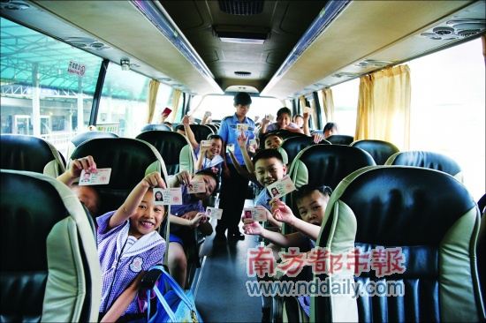 昨天開學(xué),跨境學(xué)童坐上校巴,開心地展示過(guò)關(guān)證件。通訊員劉卉攝