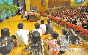臺(tái)上臺(tái)下坐滿了前聽講學(xué)的重大學(xué)生 記者 冉文 攝