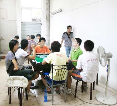 “里面賭得很大,一把牌最多可以輸200元!痹撏瑢W說,小文(化名)以前在附近一家書店里賭博,今年開始逃課來這個地方賭。如果打通宵,第二天上午就不上課,在寢室睡覺!叭ツ昙依锝o的學費都輸了,向家里要的買電腦的錢也輸了,輸了近萬元。他家里的經濟條件并不太好,讓人看著痛心!