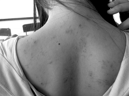 剛開學不久,四川省弘博中等專業(yè)學校新生羅珊只是身上少數(shù)部位出現(xiàn)了紅疙瘩,她以為是被蚊子叮咬也就沒放在心上。可隔了幾天寢室里的8名同學都陸續(xù)長滿了“紅包包”,大家才開始著急起來!疤貏e是襠部、腿部等隱秘部位,一出汗又痛又癢,又不方便撓。”女生小劉有些不好意思地說。記者見到女孩背部紅了一片,癥狀較輕的脖子竟已經(jīng)被撓壞。因為學校為封閉式管理,學生們并沒有到醫(yī)院醫(yī)治,只到衛(wèi)生站診治了一下或僅是簡單地涂了些外用藥。