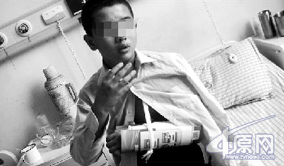 “我回到鄭州后,到醫(yī)院一檢查,我胳膊骨折錯位,如果再不接上,事就大了。昨天,醫(yī)生給我做了接骨手術(shù),在骨頭上打了鋼針!庇浾呖吹,他的胳膊還腫得厲害。