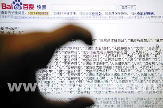 帶著滿腹疑問,沈女士某日晚間上網(wǎng)時嘗試用搜索引擎查找與自己手機號碼相關的信息。在“百度”上出現(xiàn)的搜索結果,其子小圳的姓名、學校、班別、性別、詳細住址與家長聯(lián)系電話便一覽無余。再打開“鏈接”,一個名為“××中學2008年××××錄取名單”的表格便出現(xiàn)在網(wǎng)頁上,讓她吃驚的是,按照表格上的分類,除了之前所看到的信息外,甚至還有該學生是否屬于獨生子女、家中是否擁有房產等資料。