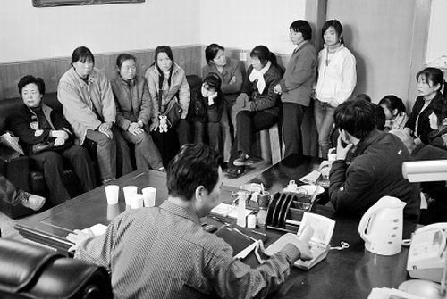 從昨天早上8時(shí)到下午5時(shí)30分時(shí),職工們一直圍坐在馬院長辦公室里,沙發(fā)、凳子不夠坐,一些人干脆蹲在辦公室門外!盁o法辦公,不得離開,也不能出去吃飯!瘪R金玉說。
