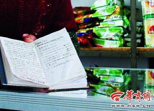 店主仵成翠向記者出示了給學(xué)生記賬的小本子,上面密密麻麻記錄了多名小學(xué)生賒賬的數(shù)額,但沒有具體名目!拔乙矝]有辦法,學(xué)生們都認(rèn)識我,一下課到店里搶著買東西,主要是小吃和學(xué)習(xí)用品,賬都是他們自己記下的,有的學(xué)生還從我這里借現(xiàn)金!