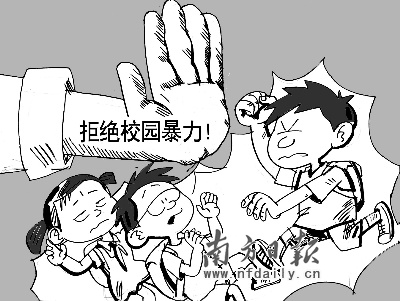 據(jù)省少工委公布的《廣東省中小學(xué)生安全意識(shí)調(diào)查報(bào)告》顯示,最近一年,31.8%的中小學(xué)生曾被人踢打或恐嚇?biāo)饕疱X。2007年網(wǎng)上先后傳出東莞、汕頭和廣州中學(xué)校園暴力的視頻;2008年1月16日花都職校女生被同學(xué)圍毆,當(dāng)眾脫褲;7月10日開平中學(xué)女生遭凌辱。這些事件僅是無數(shù)事件中少數(shù)被曝光的,說明我省校園暴力事件有愈演愈烈的趨勢(shì)。