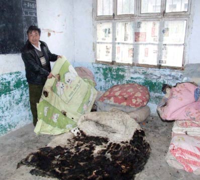 據(jù)該校教師姜懷英介紹,目前該校在不同的時間段,先后有21次不明原因地著火。根據(jù)統(tǒng)計,被燒毀的被子已接近40床。