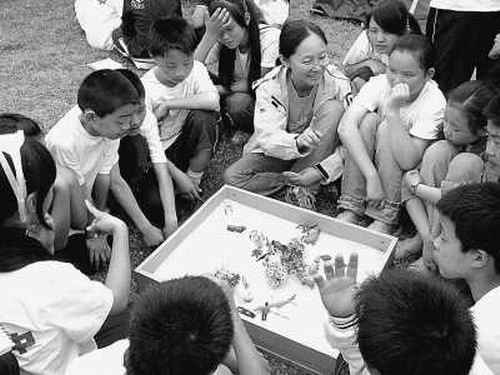 “一個人拿一個沙具,拿好后坐下來!鄙旰捎腊l(fā)布命令,孩子們聽話地做了。接下來,申荷永和高嵐問他們:你們未來最想做什么?男生普遍的理想是工程師,想建最結(jié)實的房子,女生的普遍理想是醫(yī)生,可以救死扶傷。通過這樣的談話拉近距離后,他們開始問孩子們:你挑選的沙具是什么?為什么選這個沙具?談著談著,孩子們的話越來越多,也越來越放松,孩子們的心扉打開了。
