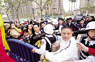 28日凌晨下起了淅瀝小雨,氣溫驟降。部分家長(zhǎng)提出,學(xué)校能否以派籌的方式讓排隊(duì)的家長(zhǎng)先回家休息。學(xué)校沒(méi)有及時(shí)出面解釋,有家長(zhǎng)開始質(zhì)疑學(xué)校有意無(wú)意地通過(guò)排隊(duì)引起轟動(dòng),提高學(xué)校知名度。據(jù)該校一位劉姓負(fù)責(zé)人回憶,去年報(bào)名當(dāng)日清晨6時(shí)沒(méi)人來(lái),到了8時(shí)也就60多人排隊(duì)!敖衲晡覀冇(jì)劃招12個(gè)班,每個(gè)班40名學(xué)生。”另一位梁姓負(fù)責(zé)人坦言,盡管學(xué)校做足了準(zhǔn)備工作并提前知會(huì)了民警,但還是沒(méi)料到“家長(zhǎng)們來(lái)得這么早”。1日上午10時(shí)許,當(dāng)學(xué)校老師走向隊(duì)伍中“抱歉地通知家長(zhǎng)”新生報(bào)名表已經(jīng)發(fā)放完畢時(shí),排在隊(duì)尾的家長(zhǎng)們開始大聲質(zhì)問(wèn)學(xué)校并往前擁擠,警方為此增派警力維持秩序。