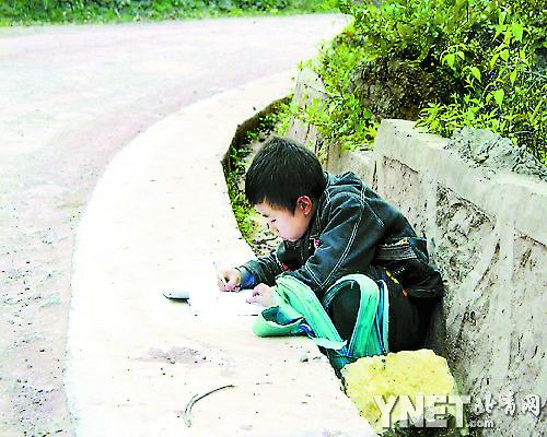 一條蜿蜒崎嶇的鄉(xiāng)村公路邊,一名小男孩佝僂著身體,趴在水泥公路路沿上奮筆寫著作業(yè)。即便有車輛經(jīng)過,他也不為所動,眉宇間透出的認(rèn)真勁,讓人無不為之動容并心生別樣情愫。這是網(wǎng)友“情緣”3月26日在云陽縣清水鄉(xiāng)一條鄉(xiāng)村公路拍到的動人一幕。帖子發(fā)到網(wǎng)上,引起了網(wǎng)友對這名小男孩的生存狀況的關(guān)注。