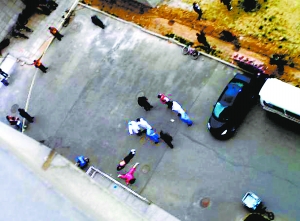 據(jù)了解,除了頂層16層外,47號樓居住的都是女生,易某所居住的13樓,所有宿舍都大門緊鎖。該樓宿管員說,昨天下午3時許,男生譚某經(jīng)過登記后進入該樓。據(jù)該樓一名女生說,當(dāng)時她在樓道里看到13層靠近樓梯的小窗口有女生在掙扎和大喊,隨后男生將女生摁在走廊的窗戶上,女生上半身探出窗外!敖(jīng)常有同學(xué)在學(xué)校里拍攝情景劇,起初以為他們是在拍戲,后來那個女生掉下去了,隨后那個男生也跳了下去,所有人都被他們的舉動驚呆了!彼f,接著耳邊傳來“ 砰……砰”兩聲巨響,她和宿舍同學(xué)都嚇傻了。