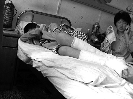病床上的小峰臉上稚氣未脫,神情輕松,而莊女士則一臉的憂愁。一個(gè)多月連續(xù)陪床使她看起來非常疲憊。