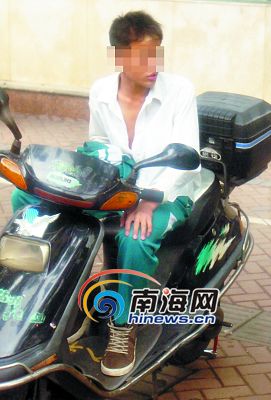 一學(xué)生騎著摩托車等同學(xué)。南國都市報(bào)記者李小崗 攝
