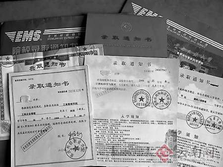 自己報(bào)考的學(xué)校沒有一個(gè)發(fā)通知書來,卻莫明其妙地收到一堆從未聽說過的學(xué)校通知書,這讓小林再也坐不住了,他專門找到本報(bào)記者,希望能查證這些通知書的真?zhèn)巍?