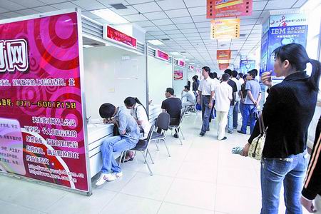 昨日,鄭州市人事局舉辦的2008年大中專畢業(yè)生專場招聘會(huì)在鄭州市人才交流中心舉行,共有150多個(gè)單位企業(yè)進(jìn)場招聘,提供職位3000多個(gè)。在招聘會(huì)現(xiàn)場,一大半招聘企業(yè)紛紛推出數(shù)量可觀的“儲(chǔ)備干部”職位,來吸引學(xué)生求職者的眼球。