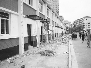 人行道上蓋起一排房屋,行人只能走到馬路上,汽車(chē)、助動(dòng)車(chē)不時(shí)擦身而過(guò),險(xiǎn)象環(huán)生。昨天,讀者殷先生致電本報(bào),反映南車(chē)站路西側(cè)人行道上突然“長(zhǎng)出”一排房屋。