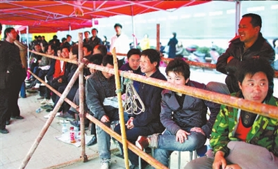 記者詢問(wèn)幾位排隊(duì)的農(nóng)民工:“你們排隊(duì)拿號(hào)是自己買房嗎?”他們說(shuō),是受買房人之托排隊(duì)拿號(hào)的。排隊(duì)—天—夜可以拿到300元的辛苦費(fèi)。由于要熬—通宵,所以都穿上了厚厚的夾衣。( 記者梁超)