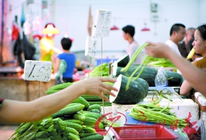 為了證實徐玲說法的真實性,記者在新街市內(nèi)的一個檔口買了兩斤菜心,單價為2元/斤,在兩三公里外的沙鳳綜合市場,記者又買了2斤半菜心,單價只為1.5元/斤。