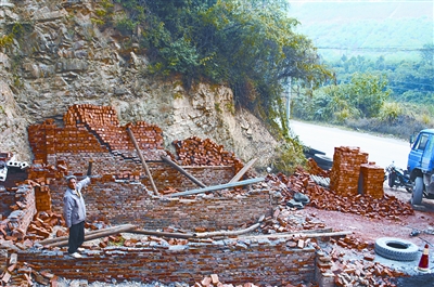此后雖有干擾,唐家仍開挖地基。到2008年,8米多高的山腳終于被他“掏”出一塊數(shù)百平方米的空地。當年5月,新房墻體已建到1米高,紙坊城管所和村委會先后下通知說他建房違法,隨后紙坊街道辦事處將墻體強行拆除。