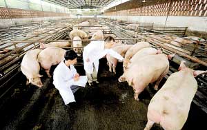 目前,該商品豬產(chǎn)業(yè)養(yǎng)殖基地累計(jì)投資已達(dá)7500萬(wàn)元,占地290畝,包括優(yōu)質(zhì)安全豬良種繁育與商品豬產(chǎn)業(yè)養(yǎng)殖基地等配套設(shè)施設(shè)備,養(yǎng)殖加拿大PIC優(yōu)質(zhì)生豬,其中40%是瘦肉率比例高的“五元豬”。該基地計(jì)劃再投資1500萬(wàn)元,明年全部養(yǎng)殖“五元豬”。